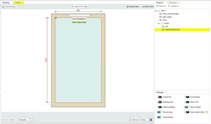 - On the Drawing Board, select the Direct Glazed Unit.