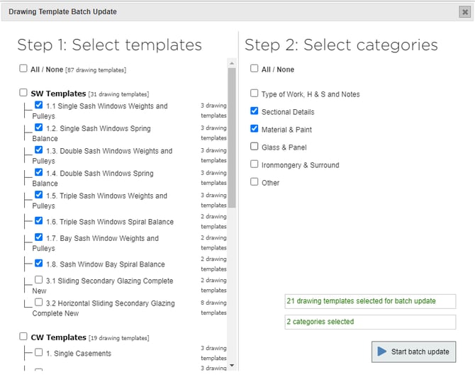 Select which template groups to update. It's advisable to only select the templates needed, as a batch update can take a while.