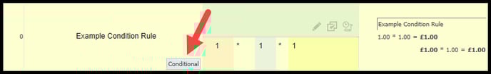 The conditional tag within the rule editors appears when a pricing element will be either low or default VAT based on a condition.