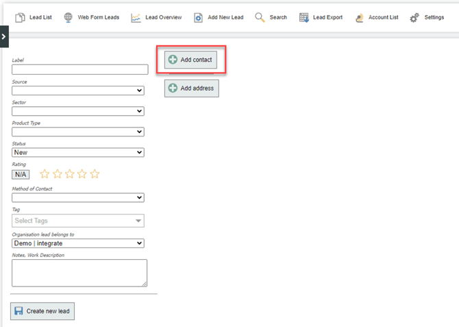 Step 1 - Add new lead. From integrateCRM home page, click add new lead.