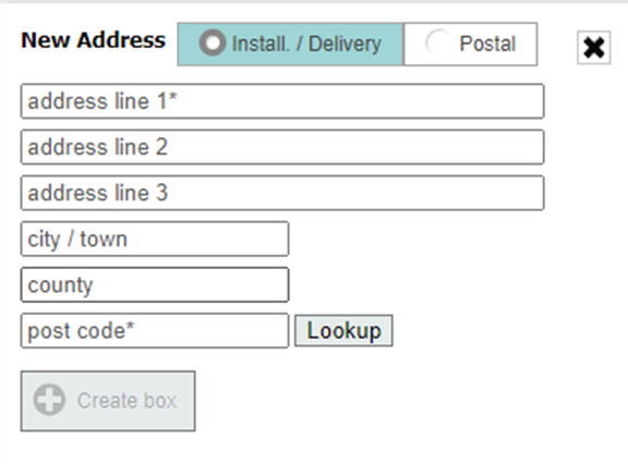 Step 5 - Add an address. Click add address, complete the address fields on the right, and click create box. You may add multiple addresses (for example, installation and correspondence).