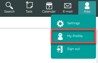 Step 1 - Access user profile. Access my profile page by clicking on the white silhouette icon with the signed-in user's name displayed below, in the top-right corner.