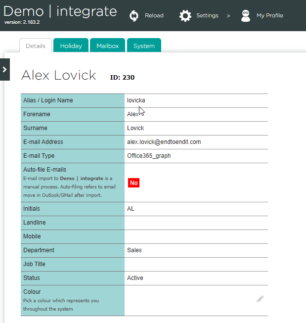 Step 2 - User details. A summary of the user's details will be displayed, including username, email address, and contact information.