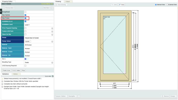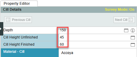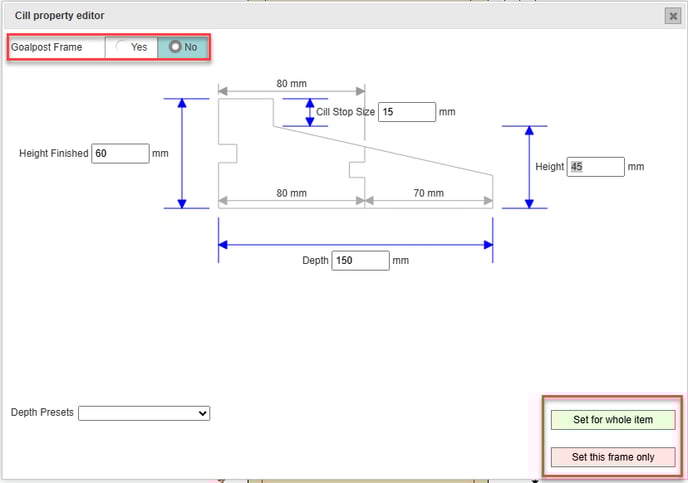 - In the Property Editor, click on any of the cill dimensions to open up the Cill editor.