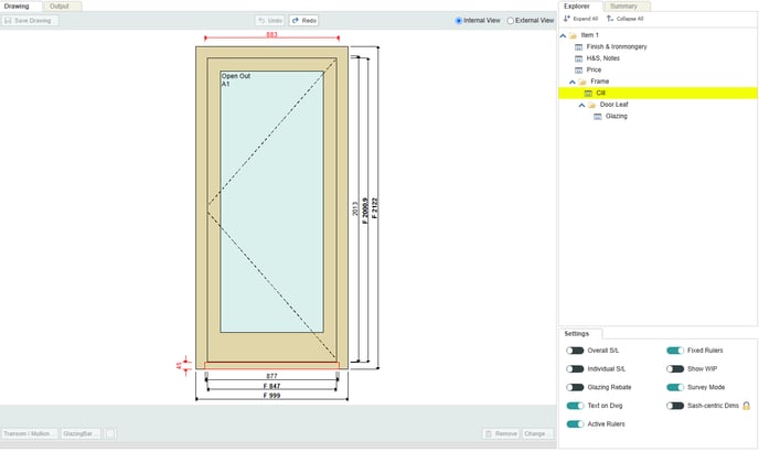 - Click Cill in the Explorer menu (or click on the cill in the drawing).