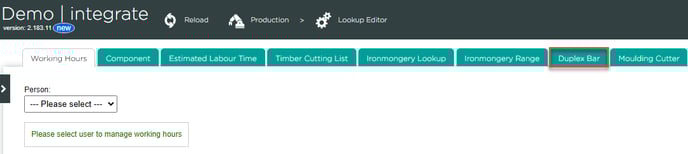 - To access the Duplex Bar Selector, from the main page click Lookup Editor within the integratePRO module, then Duplex Bar.