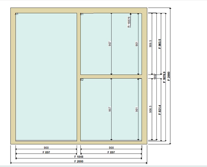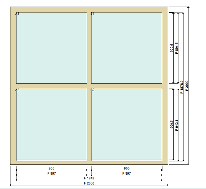 For the above drawing, the rule on the frame divider loop triggers twice, because the transom from jamb to jamb is considered as a single divider, as is the mullion from frame head to cill. On the partial frame divider loop the rule triggers four times, because this loops registers two mullions divided by a transom and two transoms divided by a mullion.