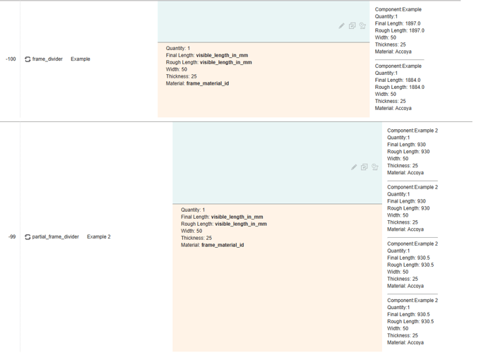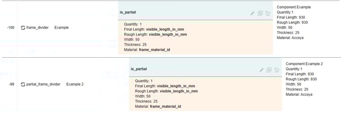 But when one divider intersects another, the loops behave differently. The frame divider loop considers the full length of each transom and mullion, whereas the partial frame divider loop considers the length up to the intersection: