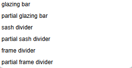 Sash divider (full and partial) refers to any part added to the sash via the Transom / Mullion button, such as door muntins.