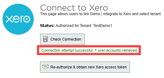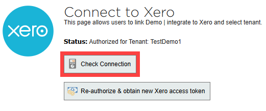 Step 8 - Verify connection. Click the check connection button to verify the connection between integrate and Xero.