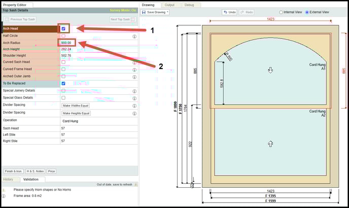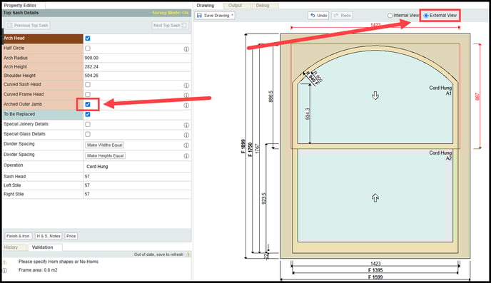 Step 4. Making sure you have the 'External View' Selected. Finally you will want to tick the 'Arched Outer Jamb' tick box