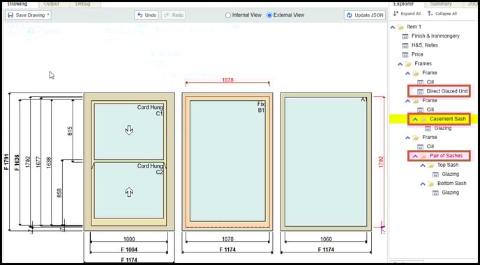 Step 2. Click on 'Pair of Sashes', 'Casement Sash' or 'Direct Glazed Unit' Depending on your item type.