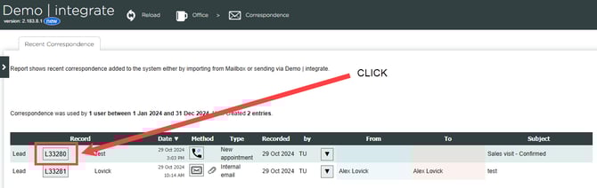 Select any lead by clicking its L-number (e.g., L33280), located on the left-hand side of the record.
