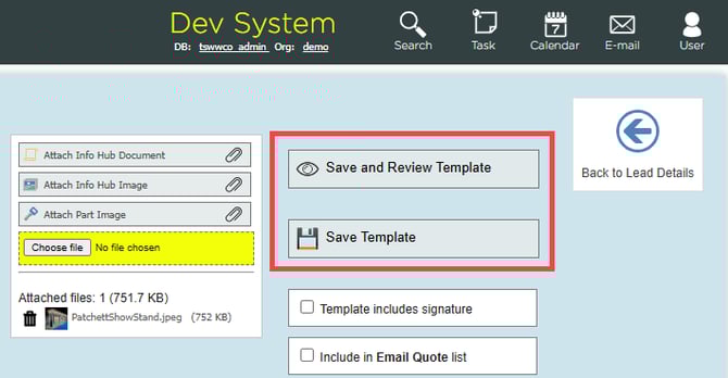 On the lead’s correspondence page, scroll down and click the create new template button.