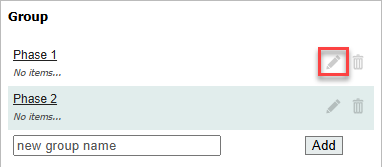 - Click the pencil icon next to the group to select which items belong under that group., then click Save.