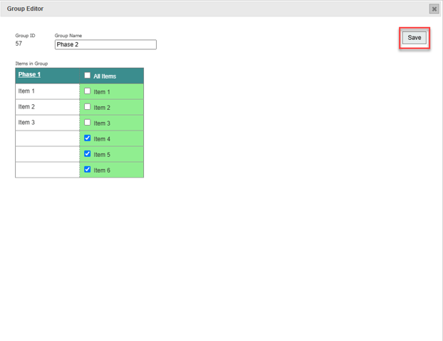 3. Assign items to groups/phases.