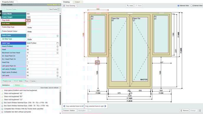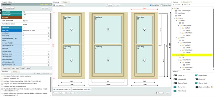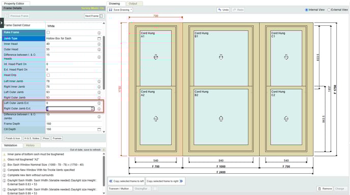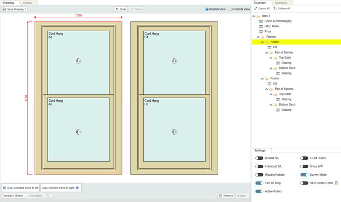 - Any drawing with more than one frame is treated as a bay window in integrate. To add additional frames to a drawing, select an existing frame and click Copy selected frame to left / right.