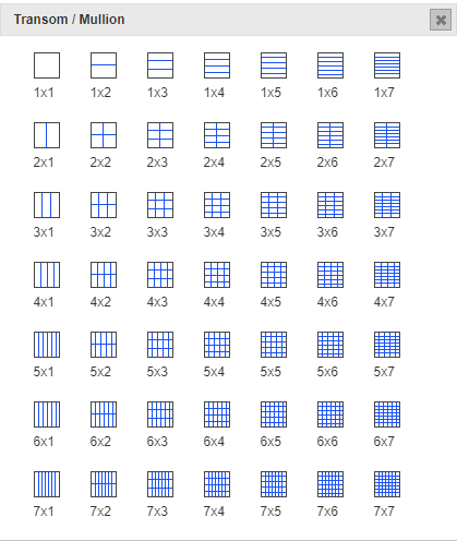 • Choose the option to divide the door leaf into as many panels as you need. e.g. for a four panel door, choose 2x2.