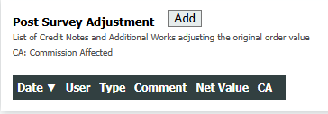 Post Survey Adjustment (PSA) updates the final net value of the order, but the original net value stays the stays. This is done via the General tab of the order, and is useful for last minute changes, where a new quote is not issued.