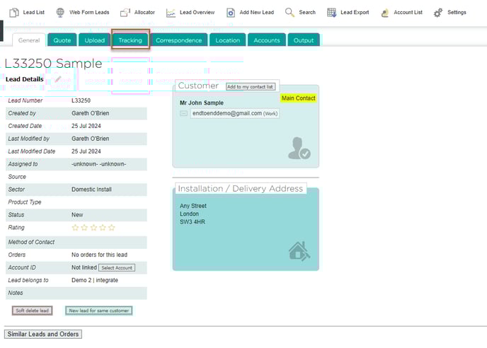 - Locate the lead, either using the main search function in the top right, or via the Lead List.