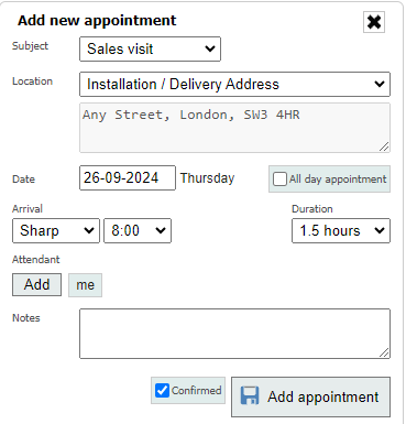 Tip: if you untick the Confirmed box, the appointment will display in the calendar as TBC.